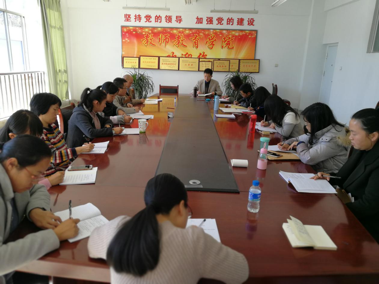 为进一步深入学习十九大报告精神,2018110下午教师教育学院教师党支部在学院会议室开展了《十九大对党章的修改及时代意蕴》的专题党课学习。本次专题党课学习由教师支部书记陈春莲副院长宣讲,组织委员巫俐群老师主持,全体党员教师参加了此次学习。