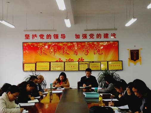 根据学校党群工作处的通知要求,教师教育学院于2018年1月12日组织全院教师进行全国全省思想政治工作会议精神的学习。学院总支书记张应红同志要求全院教师首先要提高思想政治工作的认识,加强学习,养成收看新闻联播的习惯,认真学习习近平总书记在全国高校思想政治工作会议的讲话精神。其次要提高思想政治工作的能力和水平,提高政治思想素质,自觉把思想政治工作贯穿于教育教学和管理工作中,不断提升培养具备“四个服务”能力的当代大学生。
