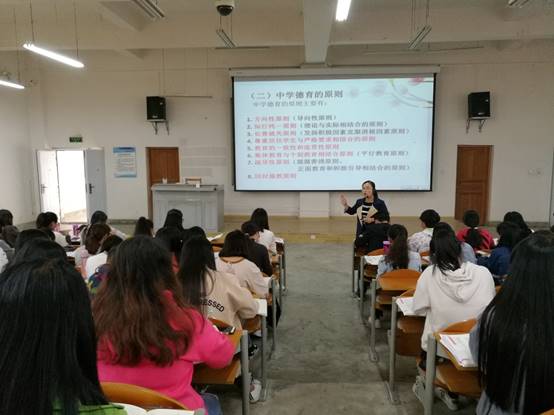 本次示范课听课教师达24人,涉及教心教研室、学前教育、历史教育、特殊教育专业的教师。听课结束后,我院组织听课教师在学院会议室进行了集体评课,大家一致认为该示范课具有如下特点:(1)能结合教师资格证国考进行备课,备课认真、充分,引经据典;(2)讲授内容熟练、思路清晰、逻辑严密;(3)教学目标明确、清晰,重难点把握得当,教学结构完整、合理;(4)教学过程中运用了讲授法、案例分析法等,注意培养学生的思维能力;(5)注意与学生的交流和反馈,能调动学生学习的积极性,师生互动好,课堂气氛好;(6)上课仪表端庄、精神饱满、教态自然;(7)语言精炼、生动准确、抑扬顿挫;(8)教学效果好。同时,也提出如下建议:(1)注意课件细节的处理;(2)适当减少案例的字数。
